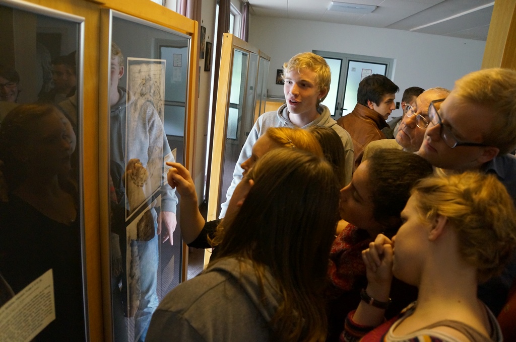 Einige dieser Reproduktionen wurden im Marianum ausgestellt. Professor Dr. Dr. B. Willmes, der Rektor der Theologischen Fakultät und Herr Rudolf Henkel vom Arbeitskreis der Bibliotheca Fuldensis freuten sich bei der Ausstellungseröffnung über das Interesse des Leistungskurses Geschichte des Marianums mit Kursleiterin Frau Andrea Renner.