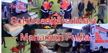 Alle zwei Jahre findet der hessische Schulsanitätstag in Frankfurt statt, der durch die Unfallkasse Hessen, das Deutsche Rote Kreuz und die Feuerwehr Frankfurt ausgerichtet wird. In diesem Jahr waren erstmalig neun Schulsanitäter des Marianums vertreten. Während des Tages konnten die SchülerInnen verschiedene Vorträge und Workshops beispielsweise zu den Themen Verletzungen im Sportunterricht, Unfälle im Chemieunterricht oder psychiatrische Notfälle bei Kindern und Jugendlichen besuchen. Beeindruckend für die Schülerinnen war auch das Feuerwehr- und Rettungs-Trainings-Centers der Feuerwehr Frankfurt, welches sie besichtigen durften.